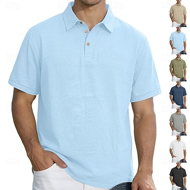 Per uomo Camicie di lino Polo Casuale Streetwear Bavero Manica Corta Essenziale Moderno Semplice Bottoni Traspirante Estate Primavera Vestibilità regolare Nero Bianco Blu marino Cachi Grigio chiaro