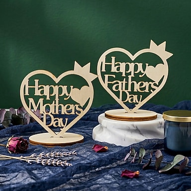 Targa decorativa da tavolo con lettera a forma di cuore e corona in legno, decorazione da scrivania dal design minimalista e cavo, regali per mamma e papà, targa decorativa per la festa della mamma e