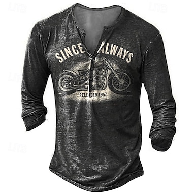 T-Shirt Henley a Maniche Lunghe Vintage da Uomo - 'Da Sempre Rilasciata 1957' Grafica Distresse Top Casual