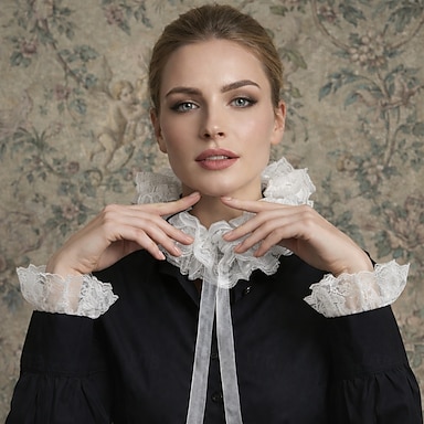 Rococò Vittoriano Rinascimento Polsini Colletto in tulle Nobildonna Costume Per donna Halloween Carnevale Performance LARP Fiera Rinascimentale Adulti Tutte le stagioni