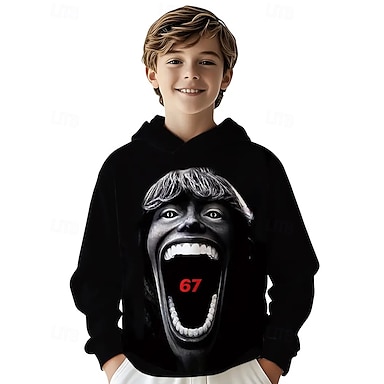 Unisex Ragazzi 3D Grafico Gergo divertente 67 Felpa con Cappuccio Maglione Manica Lunga Stampa 3D Primavera Autunno Sport Moda Streetwear Bambini 4-12 Anni Con cappuccio All'aperto Casuale Quotidiano