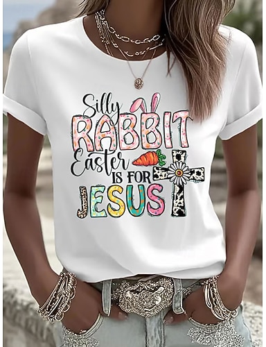 Pasqua Per donna Maglietta Stampato Floreale Grafico Animale Elegante Classico Casual Manica Corta Girocollo Top Regolari Quotidiano Blu Nero Bianco Rosa Estate Primavera