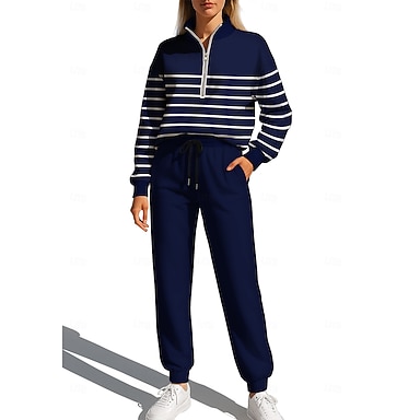 Per donna Maglia Tuta da Ginnastica Tuta da Allenamento Coulisse Cerniera Geometrico Giacca e Pantaloni da Tuta Set di Abbigliamento Sportivo Primavera Autunno Inverno Grigio scuro Blu marino scuro