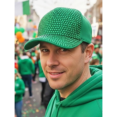 berretto unisex con strass, materiale in poliestere, decorazione scintillante, disponibile in più colori, perfetto per il giorno di San Patrizio, il carnevale e l'uso quotidiano