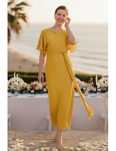 Tubino Colonna Lunghezza alla caviglia Abito da invitata a nozze Abito da cerimonia per signora Mezza Manica Scollo a Barca Elegante Vintage Formale Riunione di famiglia con Fascia / Nastro