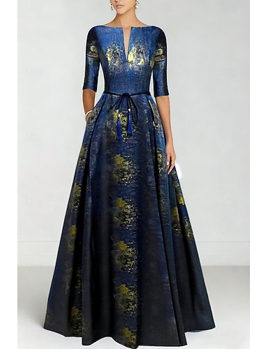 Linea ad A Abito Lunghezza alla caviglia Lunghezza Tè Vestito maxi Vestito da Festa Abito da Cocktail Abito da cerimonia per signora Manica Corta Mezza Manica Girocollo Scollo Illusione Elegante
