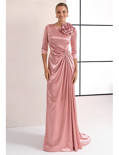 Tubino Colonna Lunghezza alla caviglia Vestito da Festa Abito da Cocktail Abito da invitata a nozze Abito da cerimonia per signora Mezza Manica Scollo a V Elegante Vintage Formale Raso con Fiori 3D