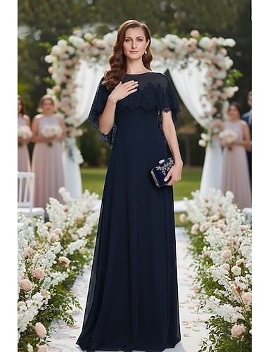 Linea ad A Lunghezza al pavimento Abito da invitata a nozze Vestito in Chiffon Abito da cerimonia per signora Senza Maniche Scollo Illusione Senza Spalline Elegante Con Stola Formale Ferie Serata
