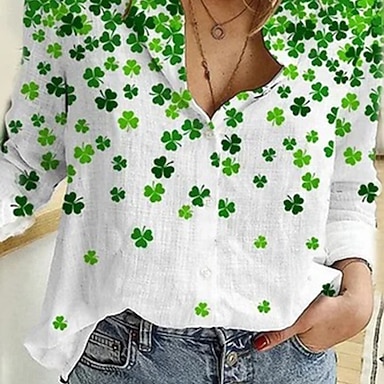 Per donna Camicia Camicia a nido d'ape Camicia casual Grafico Geometrico Elegante Vacanza Vintage Manica Lunga Top Regolari Quotidiano All'aperto Abbigliamento casual alla moda Verde primavera Bianco