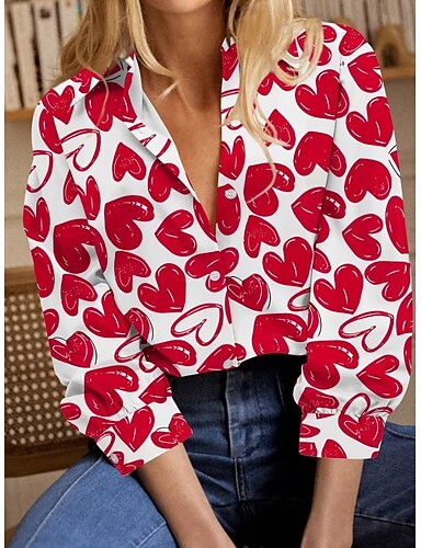 San Valentino Per donna Camicia Bottoni Stampato Cuore Grafico Vintage Elegante Moderno Manica Lunga Colletto a Camicia Top Regolari Quotidiano Rosso Primavera Autunno