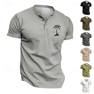 Per uomo Maglietta Maglia Henley Camicia a Maniche Corte Manica Corta Henley Estate Primavera Palma Moda Streetwear Casual Bottoni Stampato Quotidiano Vacanza Sport & Outdoor Nero Verde chiaro Bianco