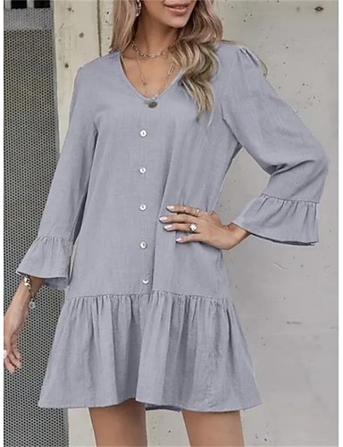 Per donna Mini Abito Finto cotone e lino Abito a Tubino Vestito Casual Moda Essenziale Moderno Manica del polsino svasato Quotidiano All'aperto Vacanza Vestibilità regolare Vestibilità comoda Semplice
