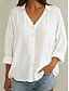 Per donna Camicia Abbottonare Blusa Finto cotone e lino Bottoni Semplice Essenziale Moderno Manica Corta Colletto a Camicia Top Regolari Quotidiano Ferie Uscire Bianco Estate