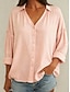 Per donna Camicia Blusa Camicia di cotone Patchwork Bottoni Semplice Elegante Classico Moderno Manica Lunga Scollo a V Top Regolari Quotidiano Ferie Uscire Blu Bianco Rosa Azzurro cielo Verde Estate