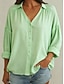 Per donna Camicia Blusa Camicia in finto lino Bottoni Semplice Vintage Classico Moderno Manica Lunga Colletto a Camicia Top Regolari Quotidiano Ferie Uscire Bianco Verde chiaro Rosa Azzurro cielo