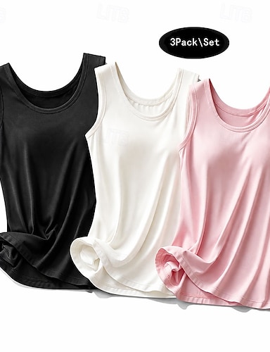 Confezioni multiple Confezione da 3 Unisex Girocollo Senza Maniche Nero+Grigio+Bianco Canotta Tinta unica Casuale Abbigliamento da Casa Poliestere Estate