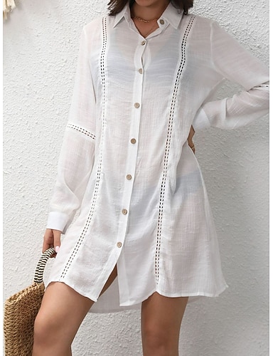 Per donna Mini Abito Abito Bianco Abito da Spiaggia Abito Camicia Copricostume Elegante Moda Classico Quotidiano All'aperto Spiaggia Vestibilità comoda Semplice Manica Lunga Colletto a Camicia Bianco