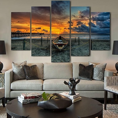 dipinto su tela minimalista tramonto astratto oceano arte murale moderna decorazione spiaggia poster mare contemporaneo elegante opera d'arte paesaggio regalo unico