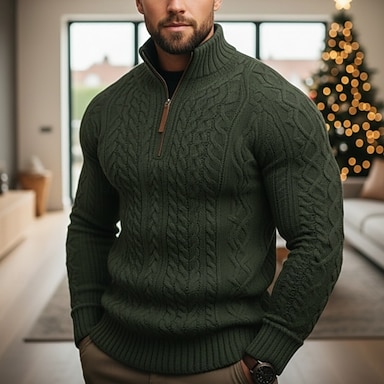 Per uomo Maglioni di Natale Maglione Treccia Maglia Top Regolari Lavorato a maglia Zip a un quarto Semplice Collo alla coreana Moderno Contemporaneo Casual Maglione di Natale Lavoro Abbigliamento