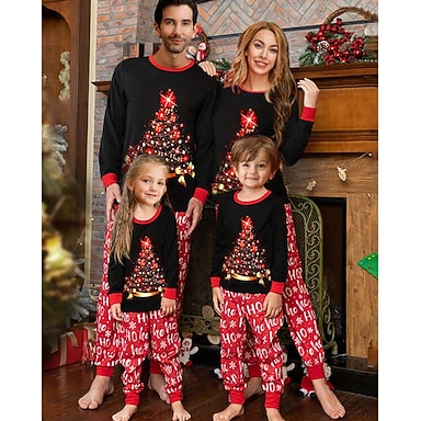 Famiglia Natale Pigiama di Natale per Famiglia Pigiama Set famiglia Grafico Albero di Natale Casa Stampato Rosso Manica Lunga Quotidiano Abiti coordinati