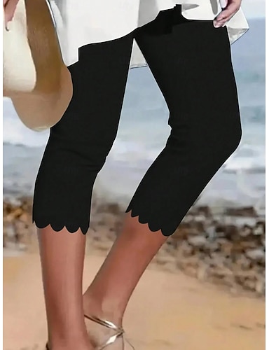 Leggings da Donna Chinos Vacanza Vintage Stile Etnico Lungo Fino Al Polpaccio Alta Vita Colore Solido Stampa Comoda Morbida Confortevole Elasticizzata Formale All'aperto Vacanza Nero Bianco Estate