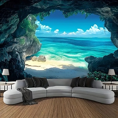Arazzo paesaggio caverna oceano arazzo da parete arte arazzo grande decorazione murale sfondo fotografico coperta tenda decorazione per casa camera da letto soggiorno