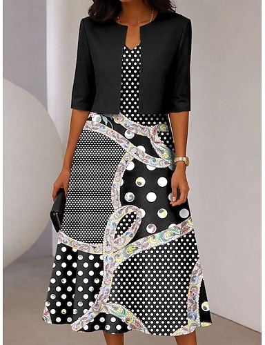 Per donna Insieme del vestito Abito Midi Abito a trapezio Elegante Casual Grafico Geometrico Stampato Abito Midi Mezza Manica Scollo a V Quotidiano Blu Nero Rosso Estate Primavera Vestibilità regolare