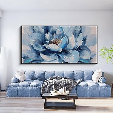 dipinto a olio fatto a mano su tela decorazione artistica da parete moderna astratta grandi petali blu fiori per soggiorno arredamento casa dipinto arrotolato senza cornice non teso
