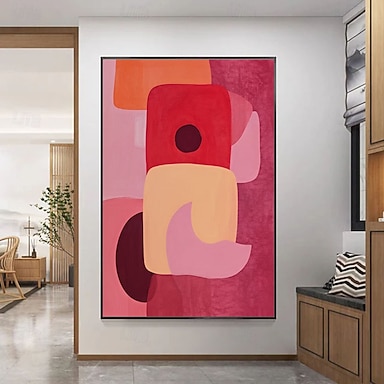 dipinto minimalista con colori vivaci, astratto, rosso e rosa, poster, dipinto moderno e contemporaneo, decorazione con dichiarazione, decorazione vibrante con dopamina