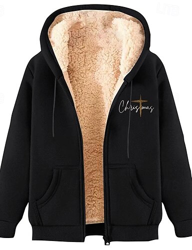 Per uomo Felpa con cappuccio Felpa con cappuccio a zip intera Felpa con cappuccio e zip Felpa con cappuccio foderata in pile Aalbicocca Nero Vino Rosso Verde Con Cappuccio Brutto Natale Croce Tasca
