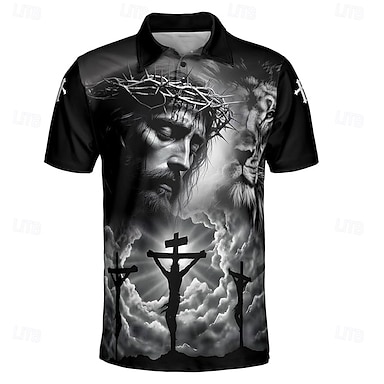 Pasqua Per uomo Croce Polo Manica Corta Magliette polo Camicie con Colletto Vintage Abbigliamento quotidiano Abito da festa Stampa 3D Estate Primavera Autunno Nero