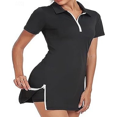 Per donna Tinta unita Abito da tennis con pantaloncini Abito sportivo Abito polo da golf Manica Corta Zip a un quarto Spacco Elastico Traspirante Tennis Golf Badminton Colletto Polo Vestito Grigio