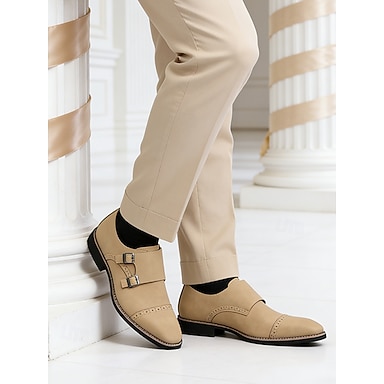 mocassini da uomo in camoscio color cuoio con fibbia, scarpe casual slip-on, calzatura comoda in stile retrò per l'uso quotidiano, l'ufficio, i viaggi, gli outfit del fine settimana, lo stile smart casual e business casual.