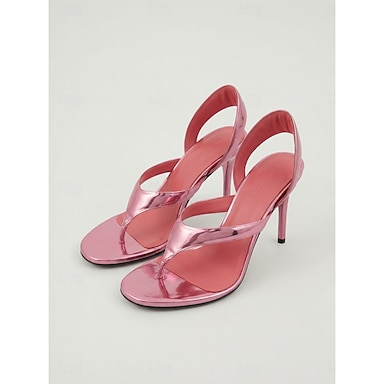 Sandali da donna con tacco a spillo rosa metallizzato, eleganti scarpe da invitata per matrimoni in giardino. &celebrazioni all'aperto