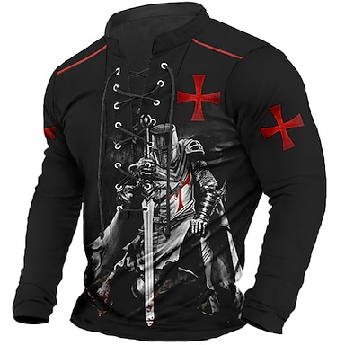 Maglietta a maniche lunghe con stampe grafiche dei cavalieri templari Crusaders da uomo designer di moda casual outdoor vacanza abbigliamento quotidiano rosso blu verde scuro primavera e autunno