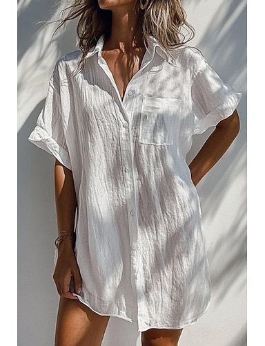 Per donna Camicia Misto cotone Abbottonare Blusa Tasca Bottoni Semplice Essenziale Casual Manica Corta Colletto a Camicia Top lunghi Quotidiano Ferie Bianco Arancione Verde Albicocca Azzurro Estate