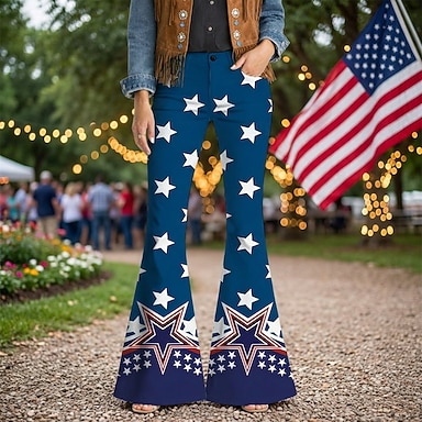 250° anniversario USA Retrò Vintage Anni '70 Pantaloni Pantaloni a gamba larga Hippie Disco Vita alta Costume Per donna Mascherata 4 Luglio Feste Giorno dell'Indipendenza Adulti Pantaloni