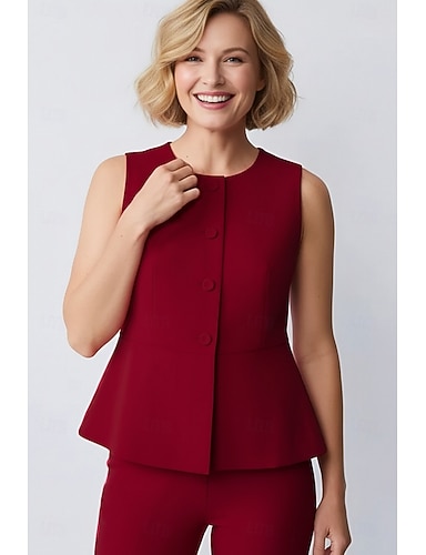 Per donna Gilet da completo Ufficio Lavoro Formale Elegante Senza Maniche Girocollo Monopetto
