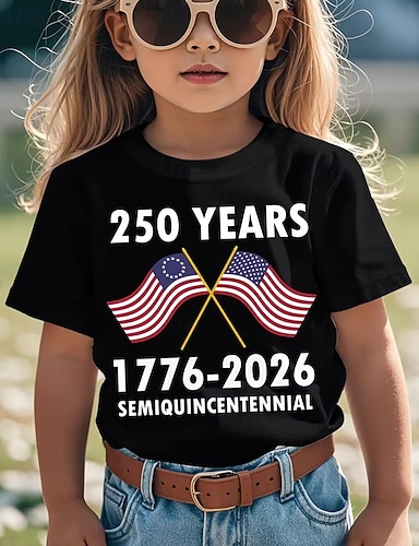 Cotone 100% Cotone Bambini Ragazzi Blu Nero Bianco Grafico 250° anniversario Maglietta Blusa Girocollo Manica Corta All'aperto Abbigliamento Quotidiano Moda Streetwear Designer Stampa Estate