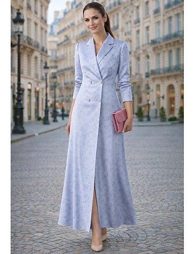 Per donna Abito da smoking Abito da ballo Linea ad A Formale Ospite di nozze Raso Elegante Manica 3/4 Lunghezza al pavimento Lunghezza alla caviglia Dentellato Doppiopetto
