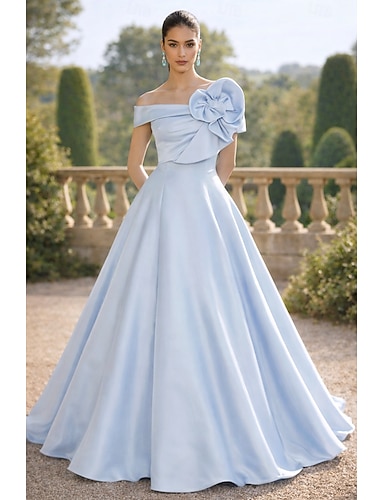 Linea ad A Strascico a Terra Abiti da Ballo Abito da Sera Da principessa Abito formale Elegante Scintillante Stile Celebrità Manica Corta Monospalla Festa in giardino Matrimonio Tessuto Lurex con