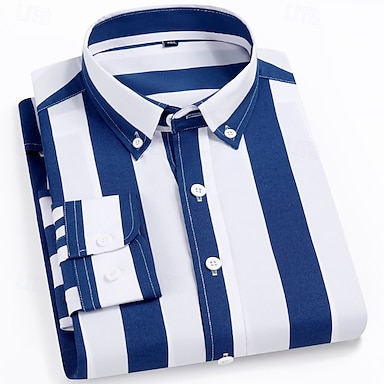 Per uomo Camicia Camicia elegante Camicia button-down Camicia non stiro A righe Abbigliamento Aziendale Giorno del ringraziamento Nero Giallo Rosso Blu marino scuro Manica Lunga Bavero Tutte le