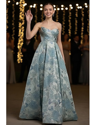 Linea ad A Lunghezza al pavimento Abito da invitata a nozze Abito Formale Abito da sera Abiti da Ballo Elegante Senza Maniche Senza Spalline Balli di fine anno Formale Jacquard Senza schiena con
