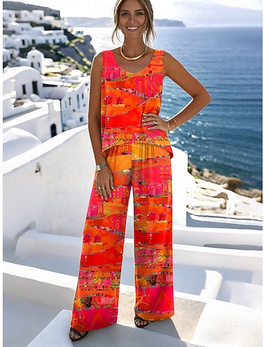 Per donna Set di Pantaloni Senza Maniche Collo a U Grafico Geometrico Vacanza Quotidiano Casuale Quotidiano Blu Viola Arancione Estate Vestibilità comoda