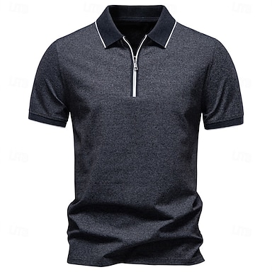 Per uomo Polo Polo con zip Casuale Quotidiano Bavero Manica Corta Moda Essenziale Tinta unica Zip a un quarto Traspirante Estate Primavera Vestibilità regolare Nero Kaki Grigio Polo