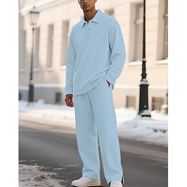 Per uomo Maglia da golf Polo da Golf Lavoro Casuale Bavero Manica Lunga Essenziale Moderno Semplice Jacquard 2 Pezzi Primavera Autunno Vestibilità regolare Nero Cachi Azzurro chiaro Grigio Maglia da