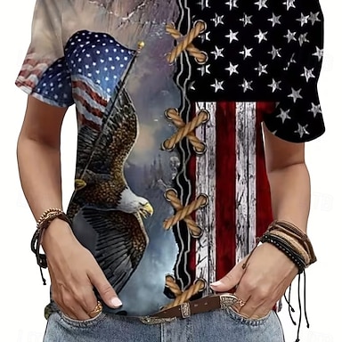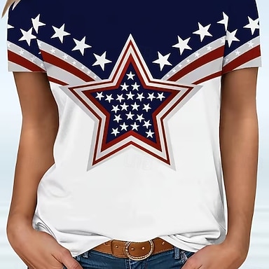 Giorno dell'Indipendenza T-Shirt Patriottica da Donna Stampa Grafica Bandiera Americana Vintage Elegante Classico Maniche Corte Collo Tondo Magliette Regolari Quotidiane Weekend Bianco-Blu Bianco