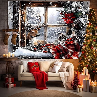 Natale arazzo Striscioni Coperta Alce Accogliente Da serata Soggiorno Dormitorio Sfondi di ripresa Yarda Regalo Arredamento per la casa