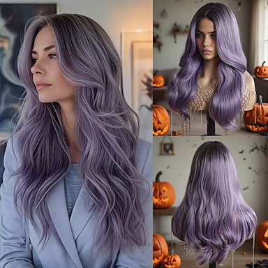 Parrucca sintetica da 26 pollici parrucca da donna viola blu capelli ondulati lunghi moda quotidiana cosplay per feste