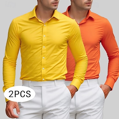 Per uomo Camicia Camicia elegante Camicia con Bottoni Camicie da Smoking Colore Solido / Tinta Unita Ufficio & Carriera Abbigliamento quotidiano Giallo+Arancione Giallo + rosa Verde / giallo Manica